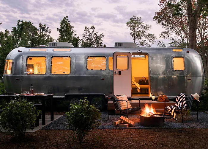 AutoCamp Catskills features a unique blend of accommodations, including modern Airstreams and canvas tents, situated among lush green forests and mountains. This 3-star Saugerties hotel offers various amenities such as a farmhouse-style Clubhouse, free continental breakfast, and outdoor event spaces.