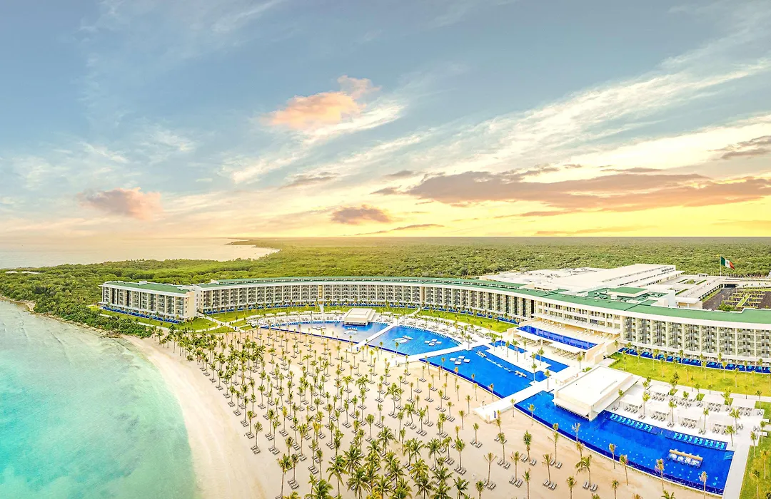 The leisure facilities include eight pools, a 1.2 miles stretch of private beach, and various water sports such as snorkeling and jet skiing. Adults can participate in nighttime entertainment programs, which encompass shows, live music, and a nightclub.