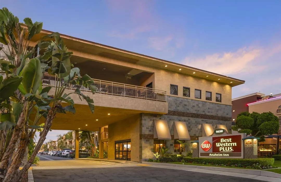 Best Western Plus Anaheim Inn is a family-friendly 3-star hotel rated 8.9/10 on Booking.com, situated directly across the street from Disneyland(R) Park. Key amenities include free daily breakfast, an outdoor heated pool, and modern guest rooms equipped with mini-fridges and microwaves.