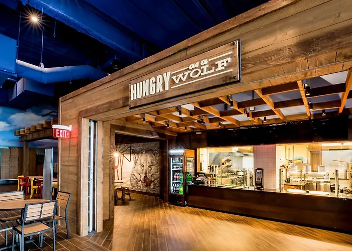 Dining options at Great Wolf Lodge Bloomington include the Campfire Kitchen, which serves family-style meals and offers a variety of casual and buffet dining choices. Guests can enjoy morning meals with French Toast Sticks and pancakes. Additionally, there are multiple grab-and-go food outlets available for convenience.