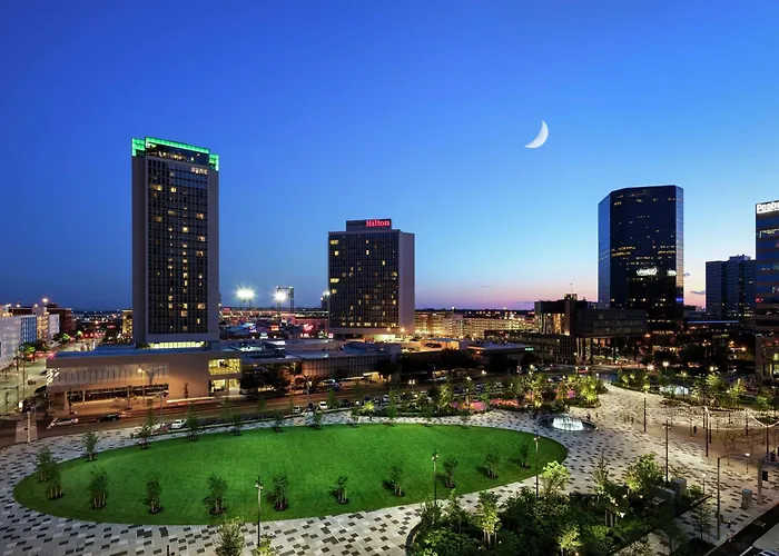 Hilton St. Louis At The Ballpark is a 4-star Saint Louis hotel overlooking the Gateway Arch and Busch Stadium. Guests enjoy access to an indoor pool and a rooftop bar with panoramic views of the city.