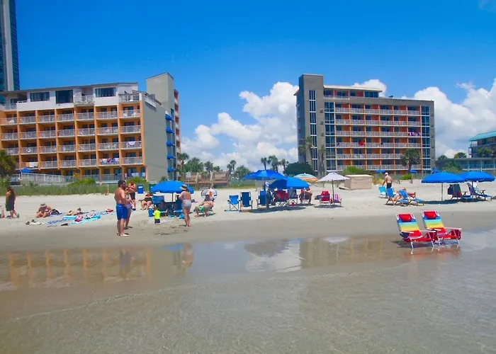 Bar Harbor On The Oceanfront is a 2-star Myrtle Beach hotel offering oceanfront accommodations with views from private balconies. The property features an outdoor pool, lazy river, and an indoor pool, making it suitable for families and pet-friendly travelers.