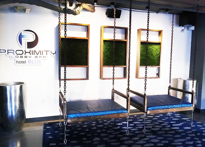 Hotel Blue is conveniently located near Myrtle Beach attractions such as the Myrtle Beach SkyWheel and Family Kingdom Water Park. The hotel provides easy access to Myrtle Beach International Airport, approximately 3.1 miles away, and is serviced by local bus routes.
