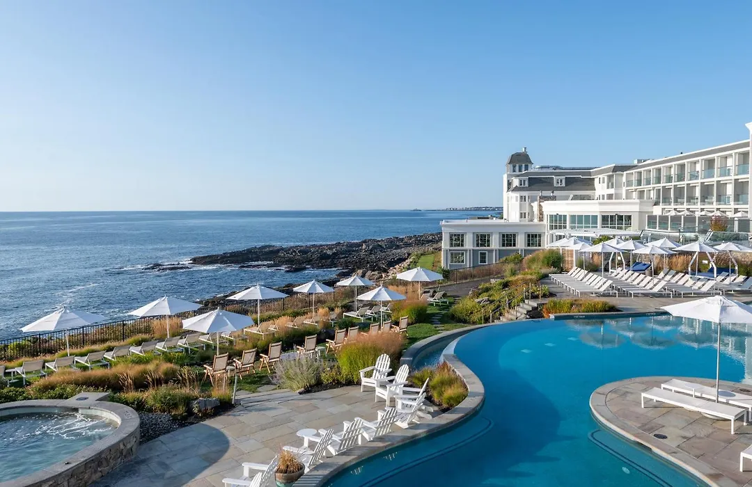 Cliff House Maine, a 4-star hotel rated 8.6/10 on Booking.com, features modern accommodations with private terraces overlooking the Atlantic. The property offers a luxury spa and wellness center, oceanfront dining, and engaging year-round activities.