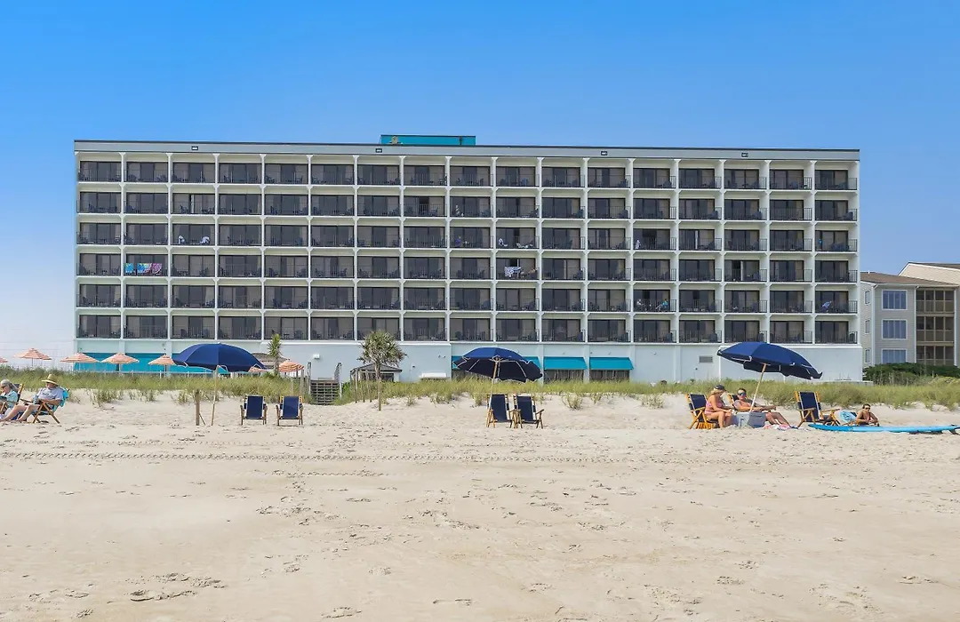 Leisure amenities at Crystal Coast Oceanfront Hotel include a seasonal outdoor pool, hot tub, and access to a private beach. Guests can engage in activities like beach yoga or take part in weekly events organized at the hotel.