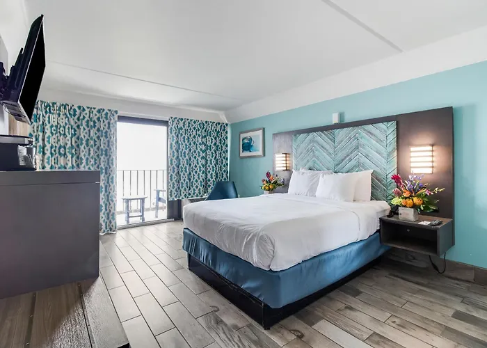 Crystal Coast Oceanfront Hotel offers oceanfront rooms with panoramic views and direct beach access. This 3-star Pine Knoll Shores hotel includes amenities such as an outdoor swimming pool, fitness center, and dining options featuring local seafood. Guests can experience a range of activities, including nearby parks and the North Carolina Aquarium.