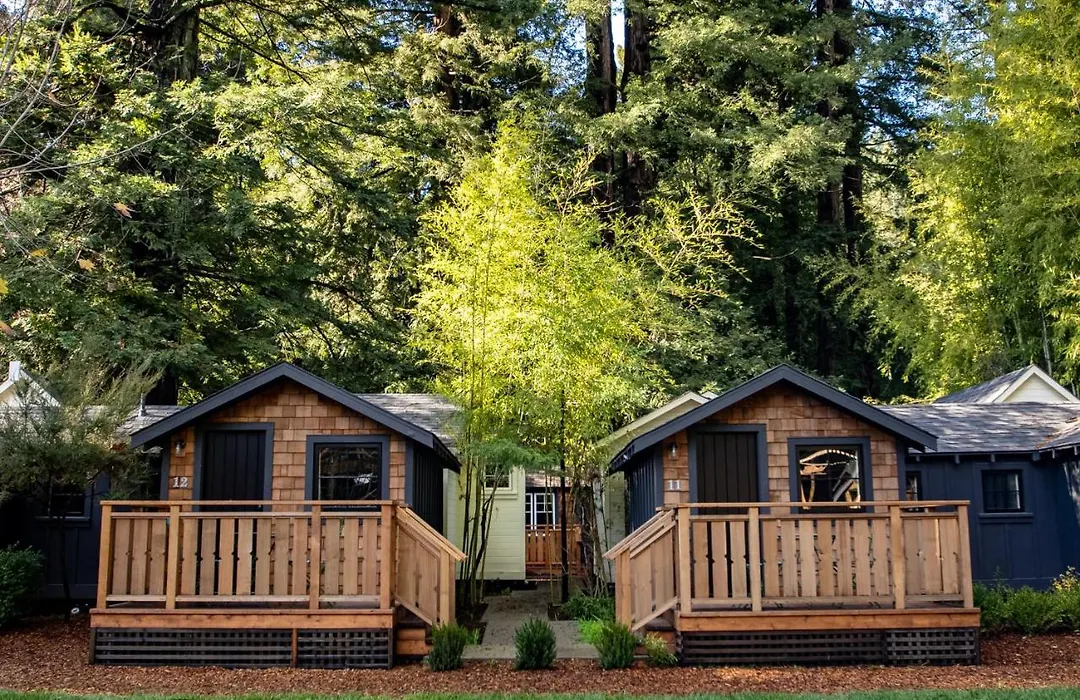 Accommodations at Dawn Ranch range from one-room cabins with private bathrooms to spacious bungalows with two bedrooms and a full kitchen. All lodging options include luxurious Bear(R) mattresses and Le Labo(R) bath amenities, ensuring a comfortable stay amidst the redwoods.