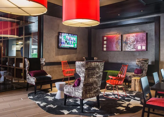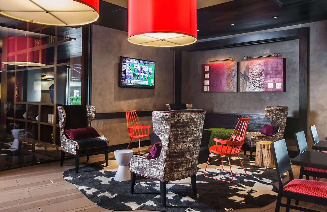 Hotel Derek offers over 10000 square feet of meeting space equipped with AVMS technology solutions. The BIZ Center includes a 24-hour fitness facility with modern equipment and a lively lounge setting. Guests can also engage in leisure activities such as pool games in the vibrant lobby.