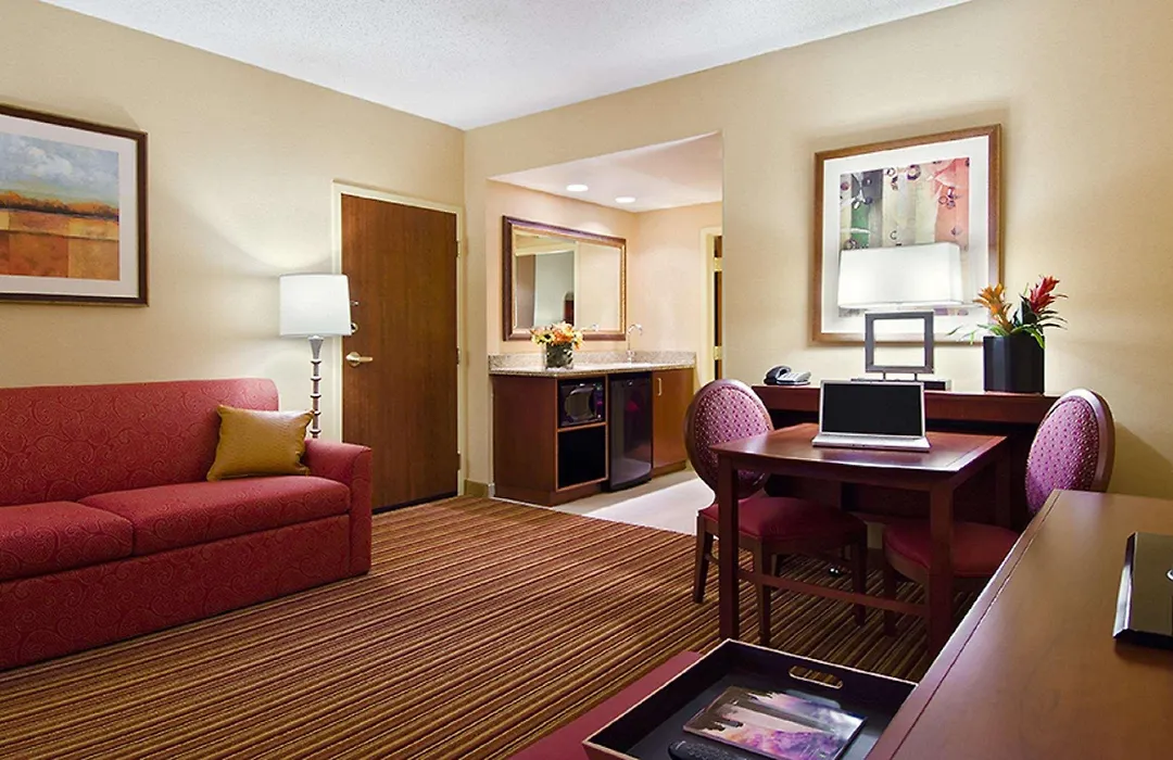 Every suite at Embassy Suites Murfreesboro - Hotel & Conference Center includes a seating area, sofa bed, refrigerator, and LCD television. Guests can enjoy options from the in-room dining menu, ranging from flatbreads to plated entrees. Certain rooms also feature a seating area for added convenience.