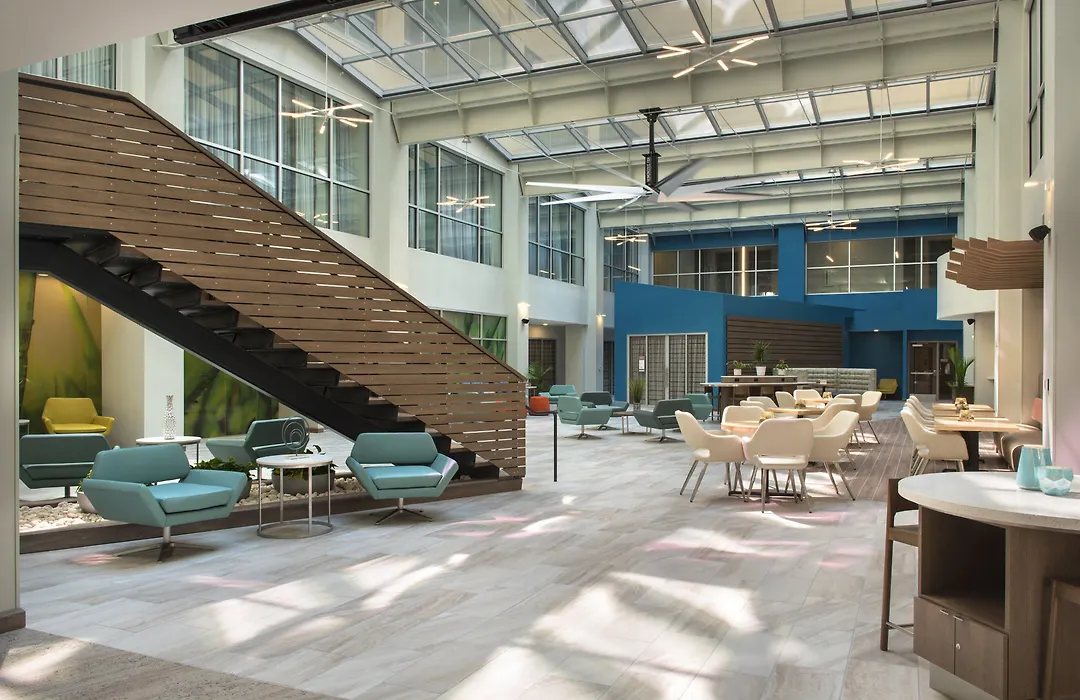 The rooms at Even Hotel Pittsburgh Downtown By Ihg are designed for wellness and comfort, featuring high ceilings, LED mood lighting, and in-room fitness zones. Amenities include free Wi-Fi, a 43-inch HDTV, and natural eucalyptus linens in select rooms.