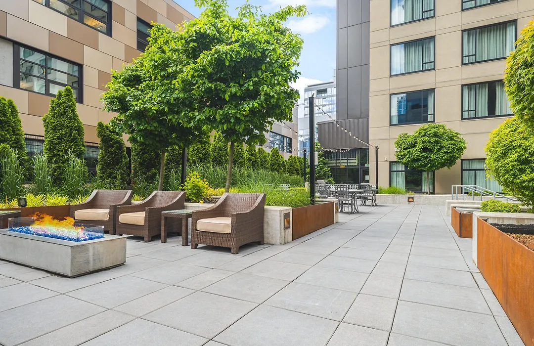 For business travelers, the hotel features 188 square feet of flexible meeting space equipped with modern amenities. An extensive business center is available 24/7, along with a dedicated event space on the outdoor patio with barbecue and fire pits. Nearby public transport includes bus options at Fairview Ave N and Mercer St, just a short walk from the hotel.