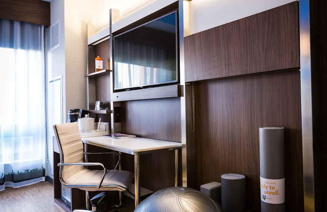 The spacious rooms at Even Hotel New York feature premium bedding, spa-inspired showers, and flexible workspaces. Guests can enjoy mood lighting and an in-room fitness zone, enhancing their wellness experience.