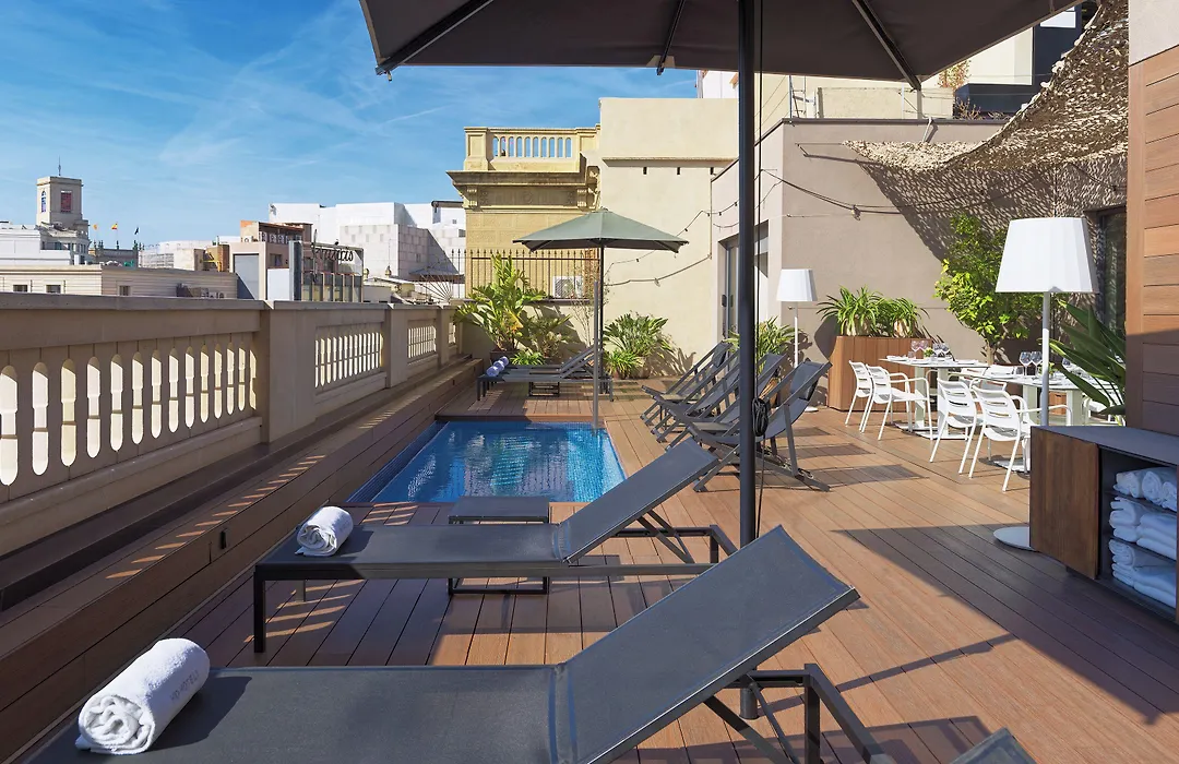H10 Urquinaona Plaza (Adults Only), a 4-star Barcelona hotel rated 8.8/10 on Booking.com, features a blend of modern interior design and preserved Novecentista details in a restored 19th-century building. Guests can enjoy a rooftop terrace with a plunge pool, an outdoor garden, and the Novecento Restaurant.