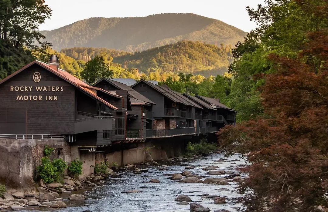 Historic Rocky Waters Inn, A Small Luxury Hotel is a 4-star hotel located in Gatlinburg, known for its heartwarming hospitality since 1935. The hotel features private balconies overlooking the Cliffbranch River, an on-site restaurant, and modern amenities designed for comfort. It provides easy access to the attractions and natural beauty of the Great Smoky Mountains.