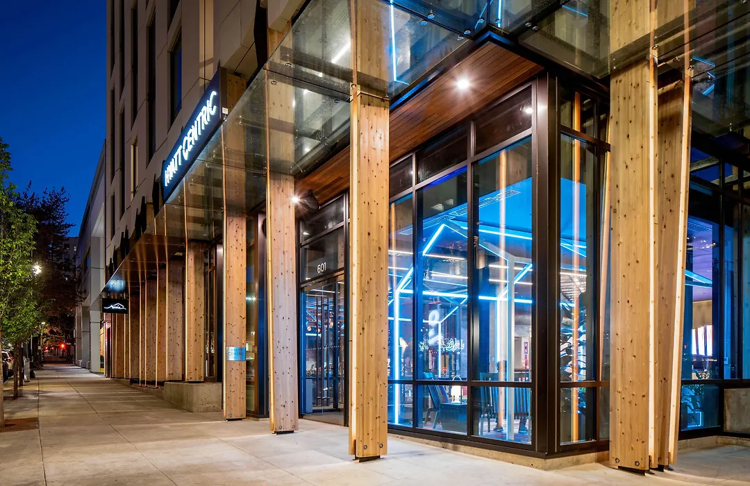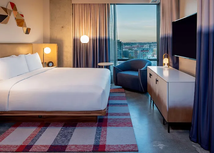 Hyatt Centric Downtown Portland offers a 4-star stay with modern amenities, including a restaurant, private parking, and a fitness center. The hotel is rated 8.6/10 on Booking.com, positioned in the heart of the city, providing guests with easy access to dining and shopping options.