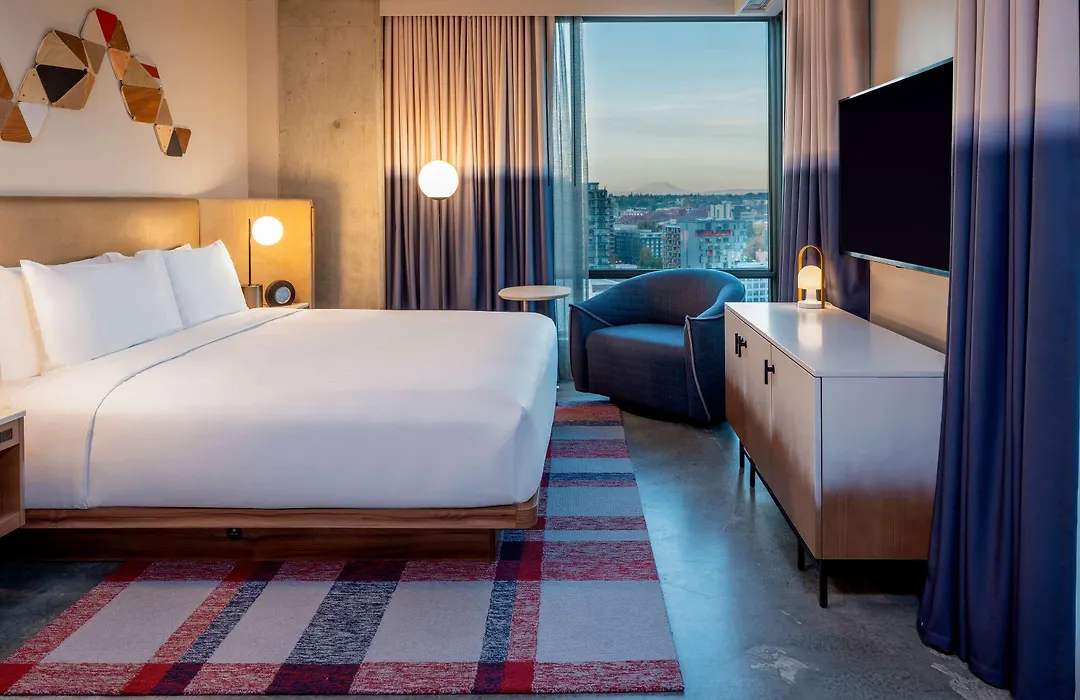 All guest rooms at Hyatt Centric Downtown Portland are air-conditioned and fitted with flat-screen TVs, tea and coffee makers, and private bathrooms featuring showers and complimentary toiletries. Some units also provide city views, catering to both comfort and aesthetics.