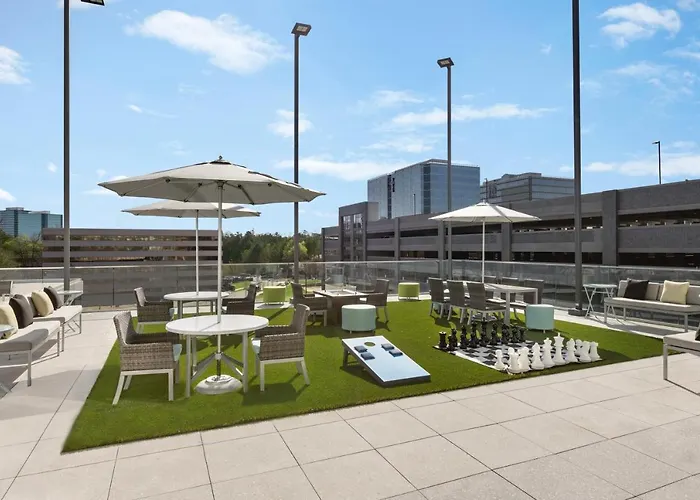 Hyatt House Atlanta Perimeter Center, a 3-star hotel with a 9.0/10 rating on Booking.com, features an outdoor swimming pool and a fitness center. Additional amenities include a restaurant, bar, shared kitchen, and conference facilities.