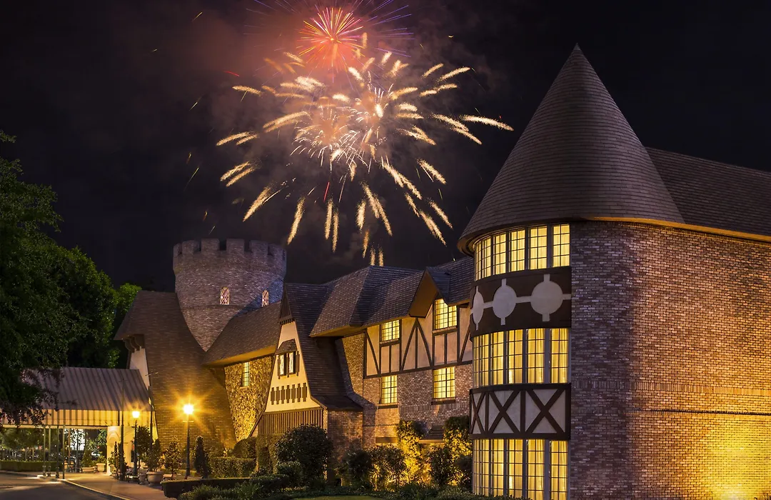With a 3-star rating and Booking.com score of 8.1, Anaheim Majestic Garden Hotel offers spacious accommodations in a castle-themed setting, ideal for families and groups. It features a free Dream Machine Shuttle to Disneyland(R) Resort, just 1/2 mile away, along with 13 acres of gardens and on-site dining options.