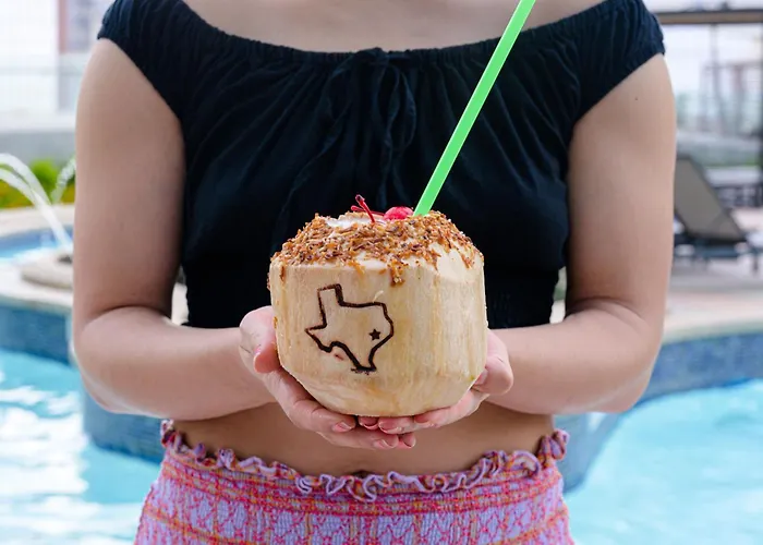 Marriott Marquis Houston, a 4-star hotel rated 8.5/10 on Booking.com, features unique amenities including a Texas-shaped lazy river and an infinity pool. This upscale hotel is ideal for both business and leisure travelers and provides over 150000 square feet of event space.