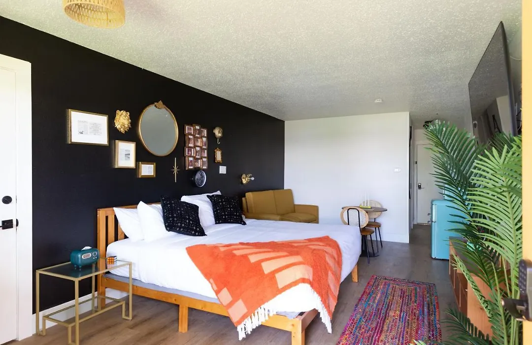 Hotel Mccoy - Art, Libations, Pool Society is a 3-star College Station hotel offering unique accommodations with modern amenities, including free WiFi and an on-site restaurant serving Mexican cuisine. Guests can enjoy a pool area and additional relaxing spaces such as a shared lounge.