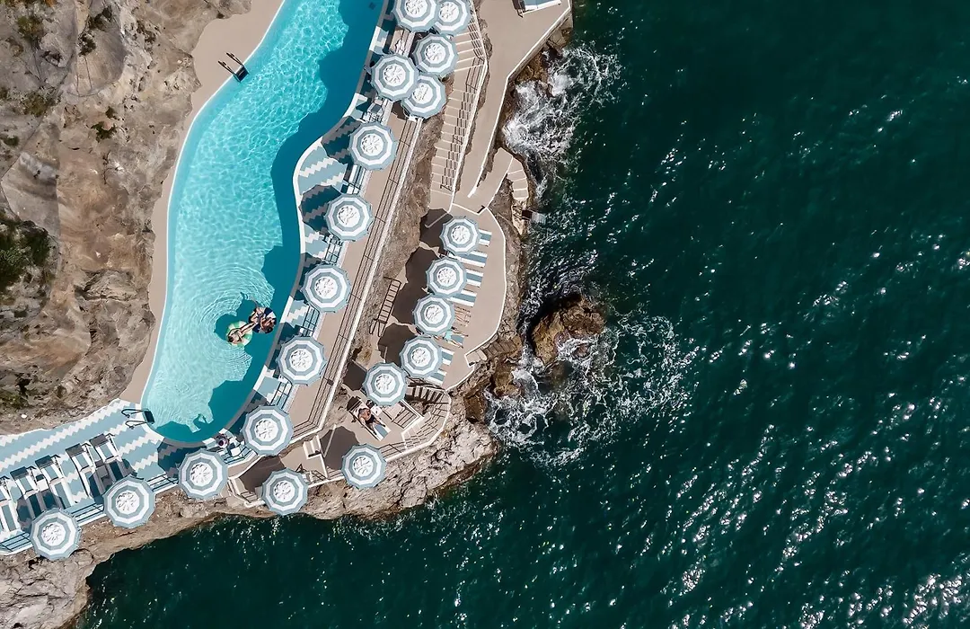 Hotel Miramalfi is a 5-star hotel with a 9.8/10 rating, featuring a Beach Club and a saltwater swimming pool, overlooking the Mediterranean coastline. This Amalfi hotel combines contemporary design with breathtaking views of the coastline.