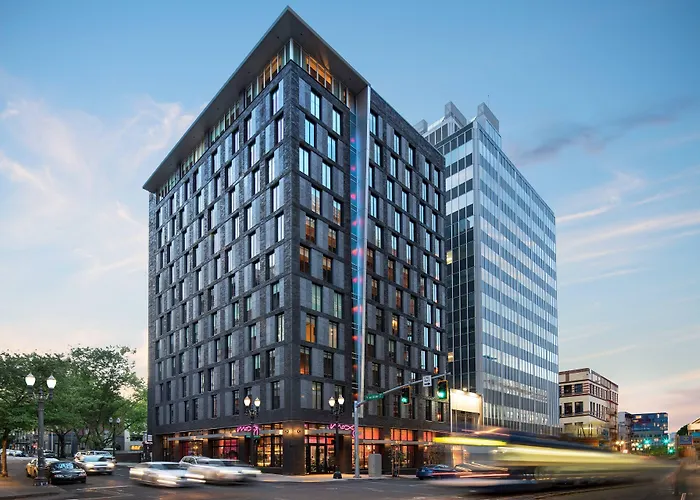 Moxy Portland Downtown is situated in the Downtown Portland district, providing easy access to public transport including bus stops and the Portland Aerial Tram within walking distance. The nearest airport is approximately 6.2 miles from the property.