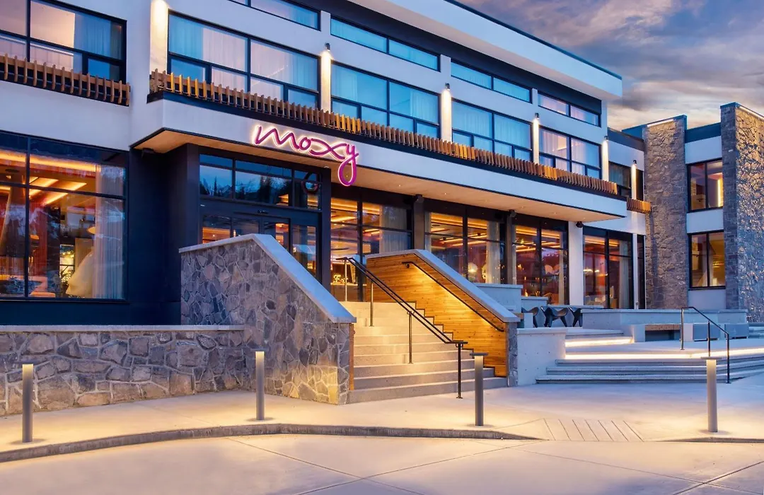 Moxy Banff is a family-friendly hotel featuring bold mid-century design elements alongside contemporary amenities. Guests can enjoy Bar Moxy, a vibrant social space with a fun atmosphere and on-site dining options, as well as a fitness center and a hot pool courtyard.