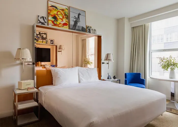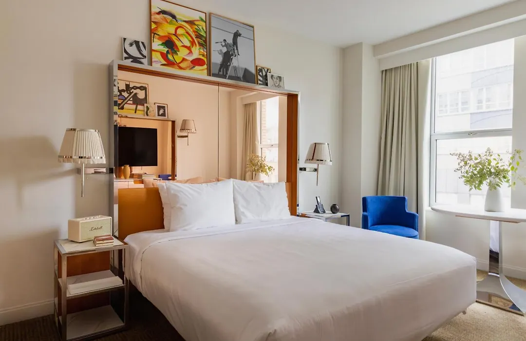 Rooms at Hotel Park Ave Nyc include king rooms on the top floors featuring private balconies overlooking Park Avenue. Spacious suites offer separate living areas, luxurious bathrooms, and amenities like locally curated minibars and smart televisions.