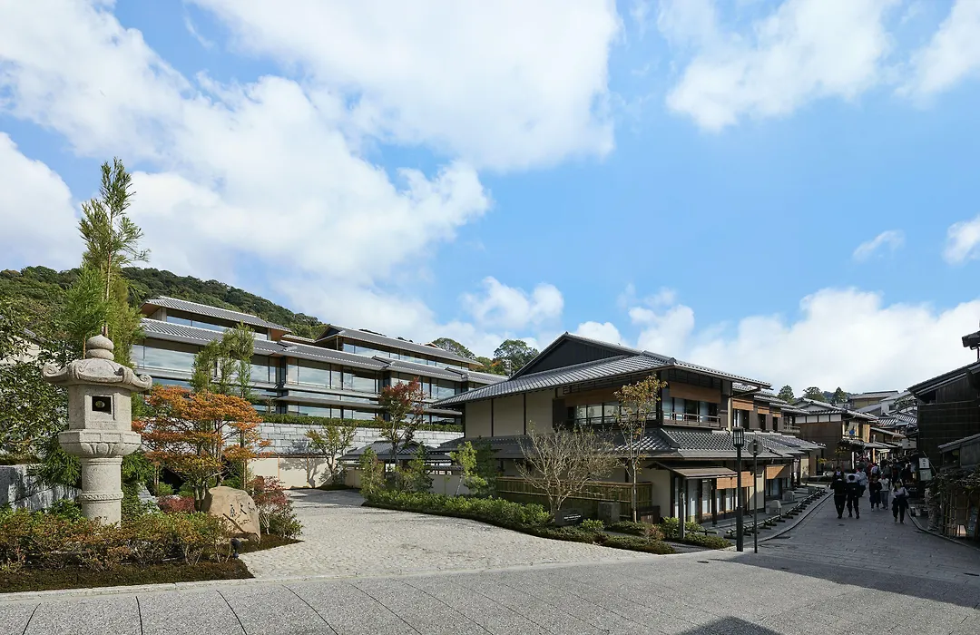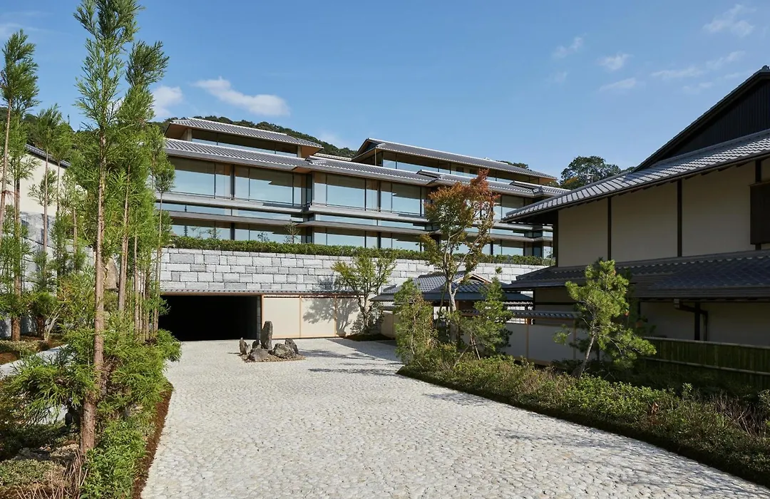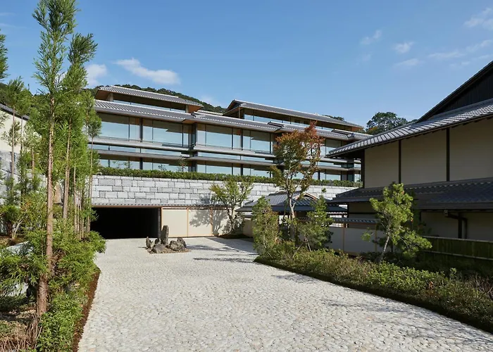 Park Hyatt Kyoto, a 5-star hotel rated 9.2/10 on Booking.com, features a seamless blend of contemporary luxury and historic charm. The hotel includes several interconnected buildings with stunning views across Kyoto's skyline and offers a serene spa and fine dining options.