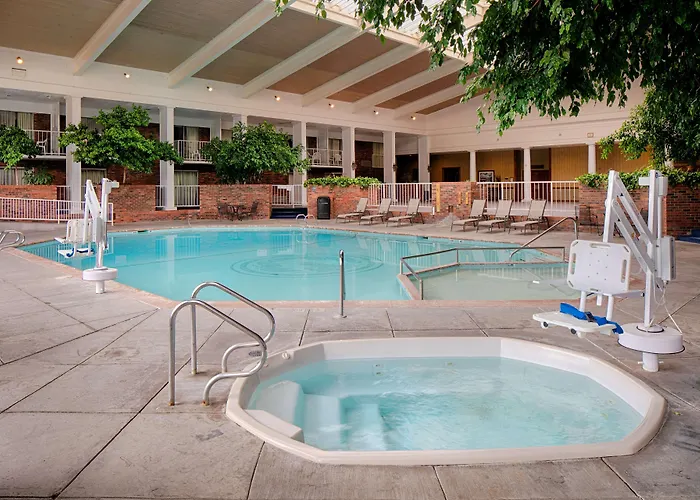 Red Lion Hotel Pocatello, a 3-star hotel with a rating of 7.1/10 on Booking.com, features 150 modern accommodations, an indoor swimming pool, and a fully-equipped fitness center. This pet-friendly hotel offers on-site dining options and extensive event facilities, making it suitable for families and business travelers.