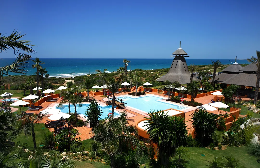 Royal Hideaway Sancti Petri, a 5-star luxury resort, is situated on La Barrosa beach, recognized as one of the best in the region. Guests can enjoy 195 elegantly designed rooms, five outdoor pools, and the extensive U-Spa, making this a prime choice for relaxation and recreation.