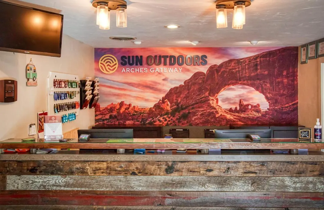 Sun Outdoors Arches Gateway is a 2-star Moab hotel rated 8.4/10 on Booking.com, offering RV and cabin accommodations. The property features amenities such as free WiFi and well-equipped mobile homes.