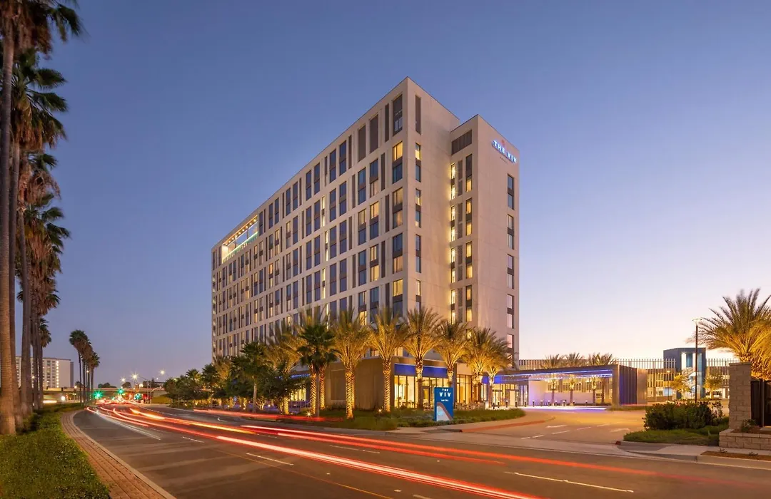 The Viv Hotel, Anaheim, A Tribute Portfolio Hotel offers 5-star accommodations with a variety of amenities, including two outdoor heated pools, a hot tub, and onsite dining options. Located within a short drive from Disneyland and Downtown Disney District, this Anaheim hotel is designed for family-friendly stays.