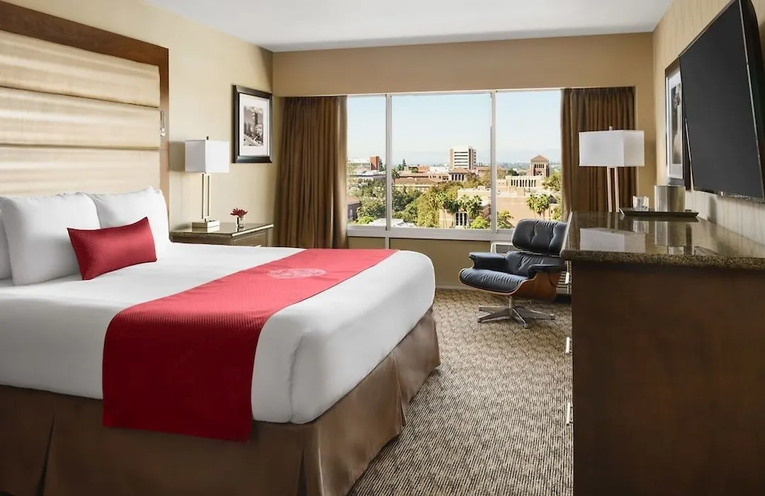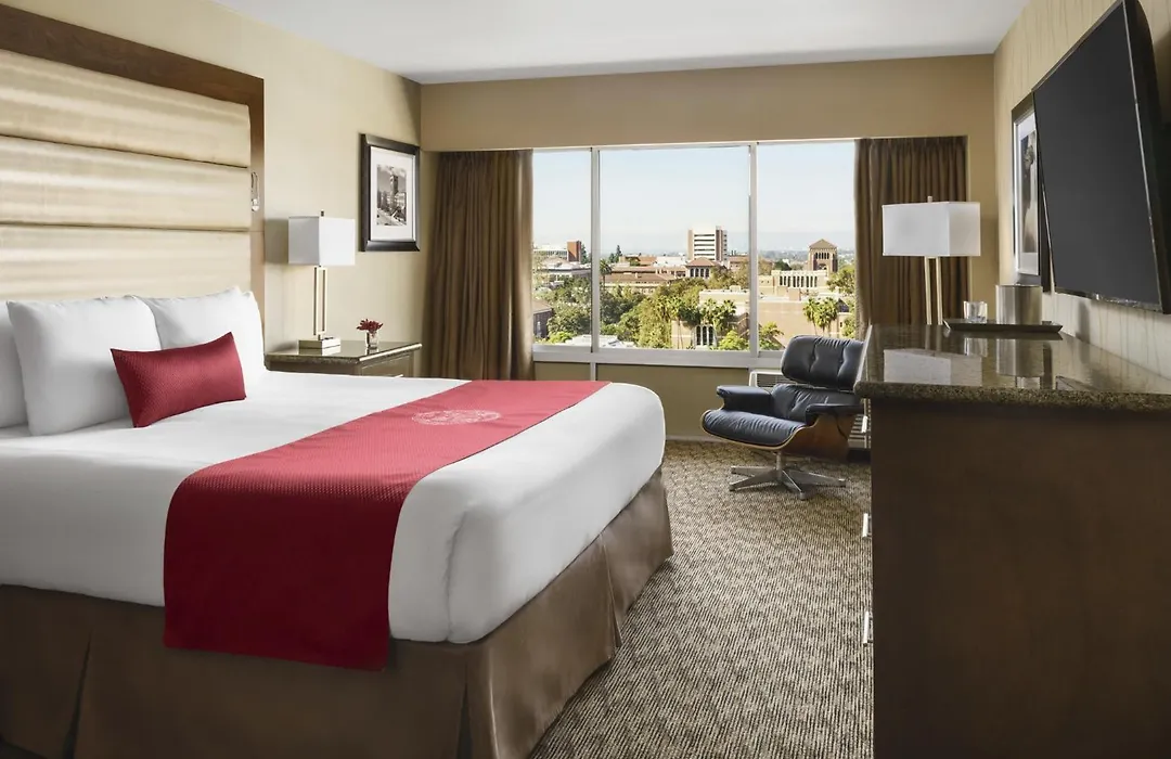 Usc Hotel, a 4-star Los Angeles hotel with an 8.5/10 Booking.com rating, offers 240 rooms and a full-service fitness center. This pet-friendly property features an outdoor pool and multiple dining options, all situated adjacent to the USC campus.