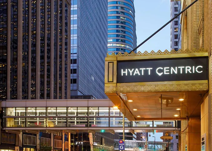 Hyatt Centric Downtown Minneapolis boasts a central location with proximity to landmarks such as the Minneapolis Convention Center and U.S. Bank Stadium. Transportation options include nearby bus routes and the Nicollet Mall train station, just 0.3 miles away.