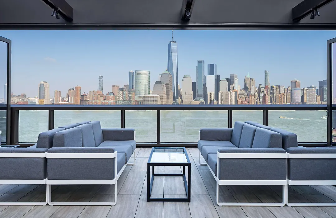 Hyatt House Jersey City, a 4-star hotel rated 8.4/10 on Booking.com, offers modern amenities, including a rooftop lounge with views of the Hudson River and New York City skyline. Guests benefit from thoughtfully designed rooms and convenient dining options.