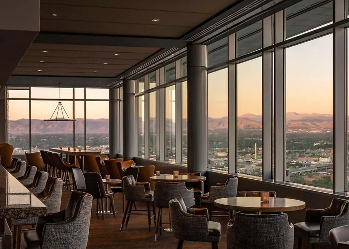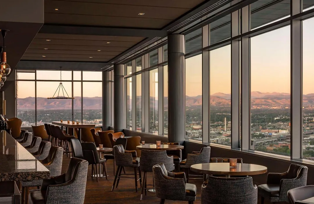 Dining options include Former Saint Kitchen + Bar serving three meals a day, and Assembly Hall Bar + Market, offering grab-and-go selections. Guests can unwind at Peaks Lounge, the highest lounge in the city, which provides panoramic views of the Rocky Mountains.