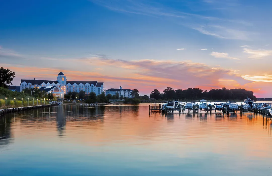 Hyatt Regency Chesapeake Bay Golf Resort, Spa & Marina is a 4-star Cambridge hotel featuring an 18-hole golf course, a 150-slip marina, and a full-service Sago Spa. Guests can enjoy various dining options, including the Water's Edge Grill, and numerous leisure activities on-site.