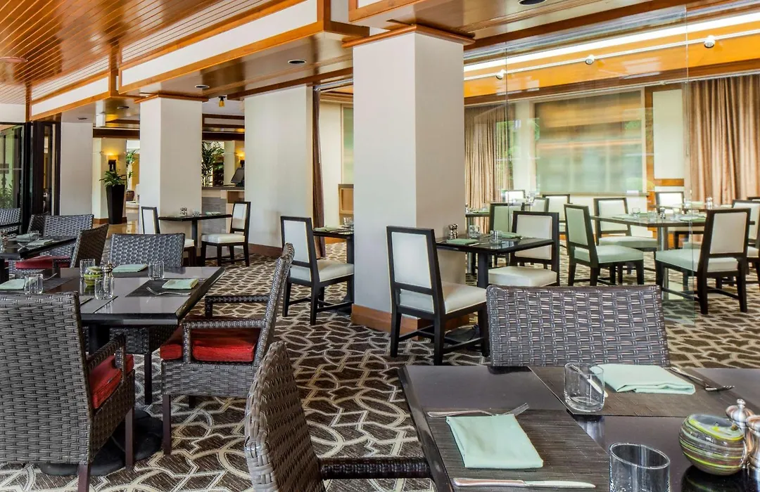 Dining options include Harvest Kitchen & Bar, providing farm-to-table American cuisine with an option for outdoor seating. Guests can relax by the fire pits or enjoy a complimentary breakfast buffet each morning. Nearby dining options include Mendocino Farms and Tuscany il Ristorante.
