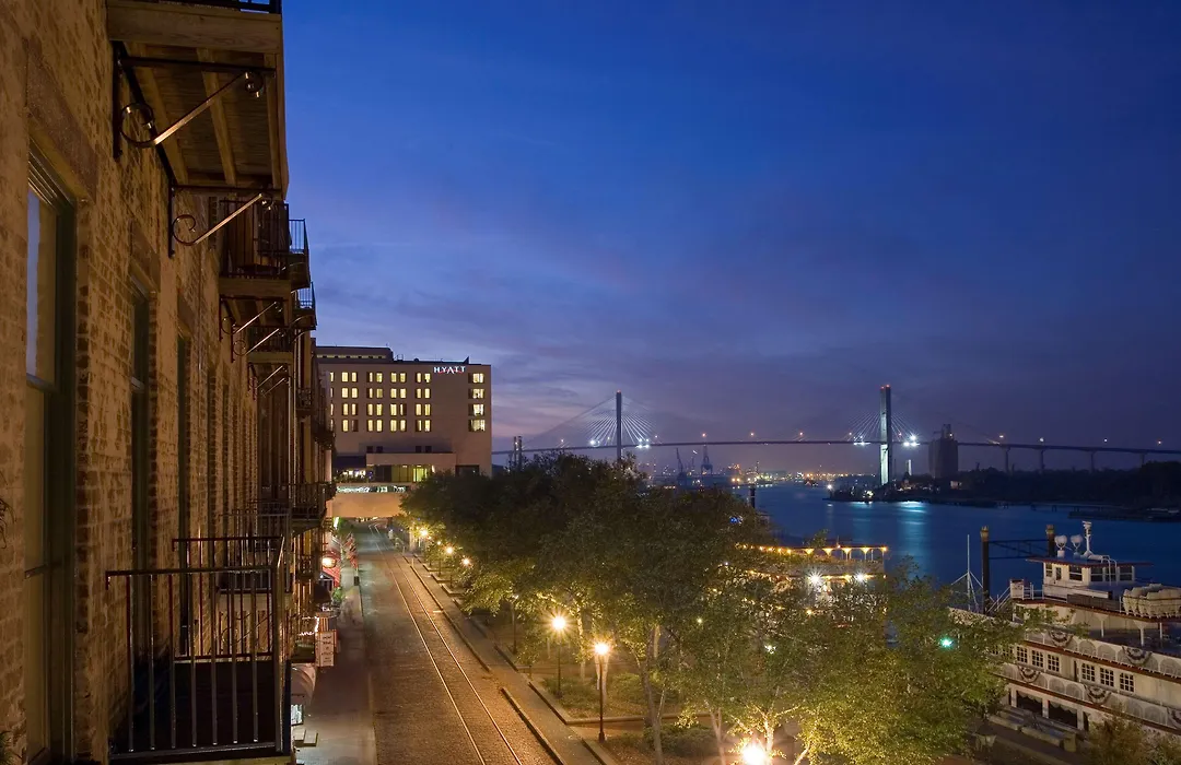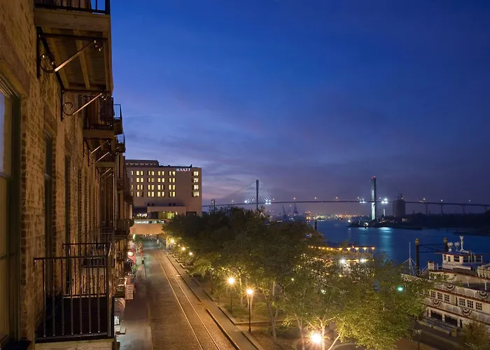 Hyatt Regency Savannah, a 4-star hotel, offers a waterfront location along the Savannah River with modern amenities and dining options. It features a fitness center, business center, and free WiFi throughout the property, providing guests with necessary comforts during their stay.