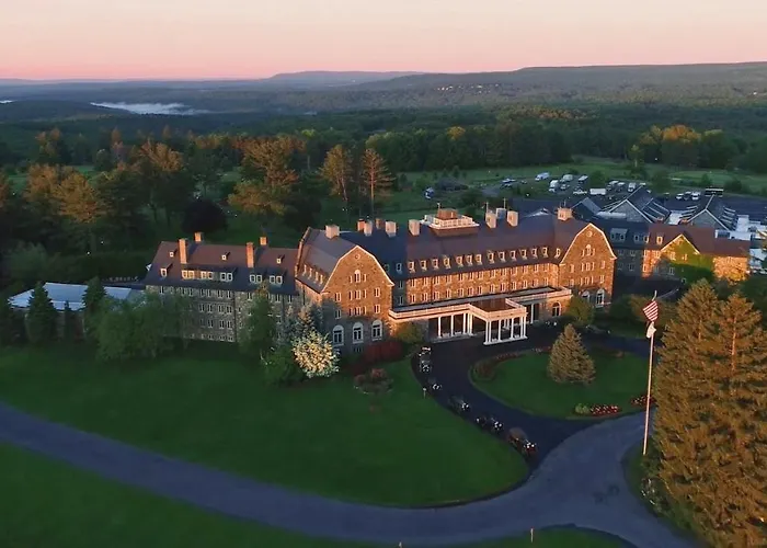 Skytop Lodge, an 8.8/10 rated 3-star hotel, offers a blend of modern amenities and natural beauty within a 5500-acre playground. The resort features a dedicated Adventure Center, an award-winning golf course, and various dining options, making it suitable for family-friendly and outdoor enthusiasts.