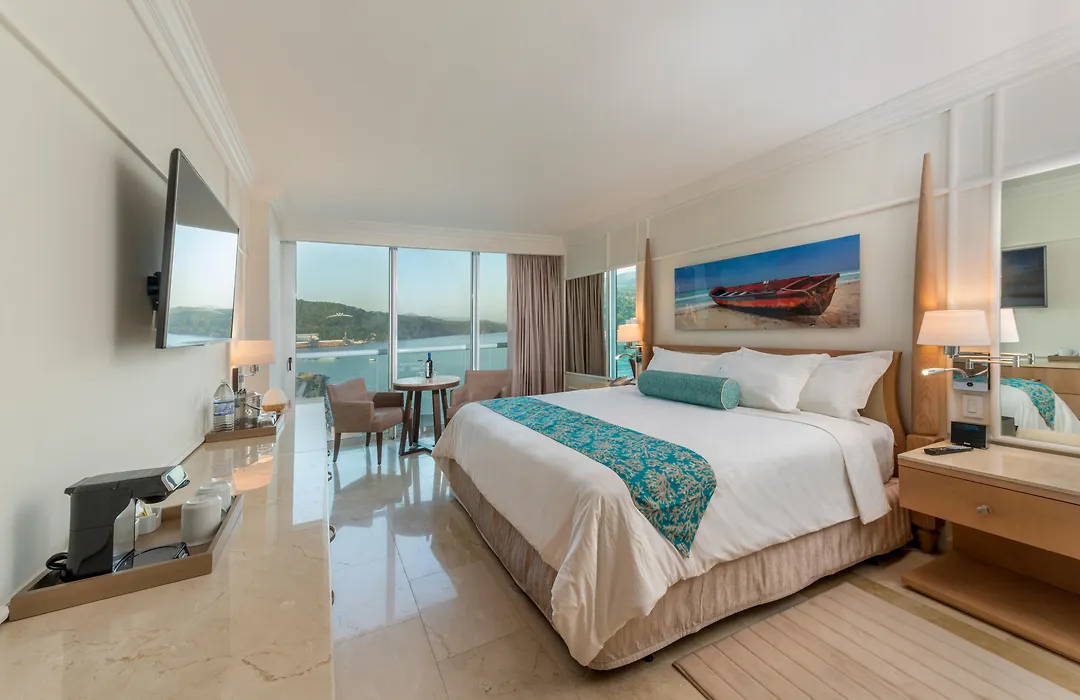 Dining options include a variety of gourmet restaurants serving local and international cuisines, providing unlimited access to diverse culinary experiences. Guests can start their day with breakfast on their balcony while enjoying stunning views of the Caribbean.
