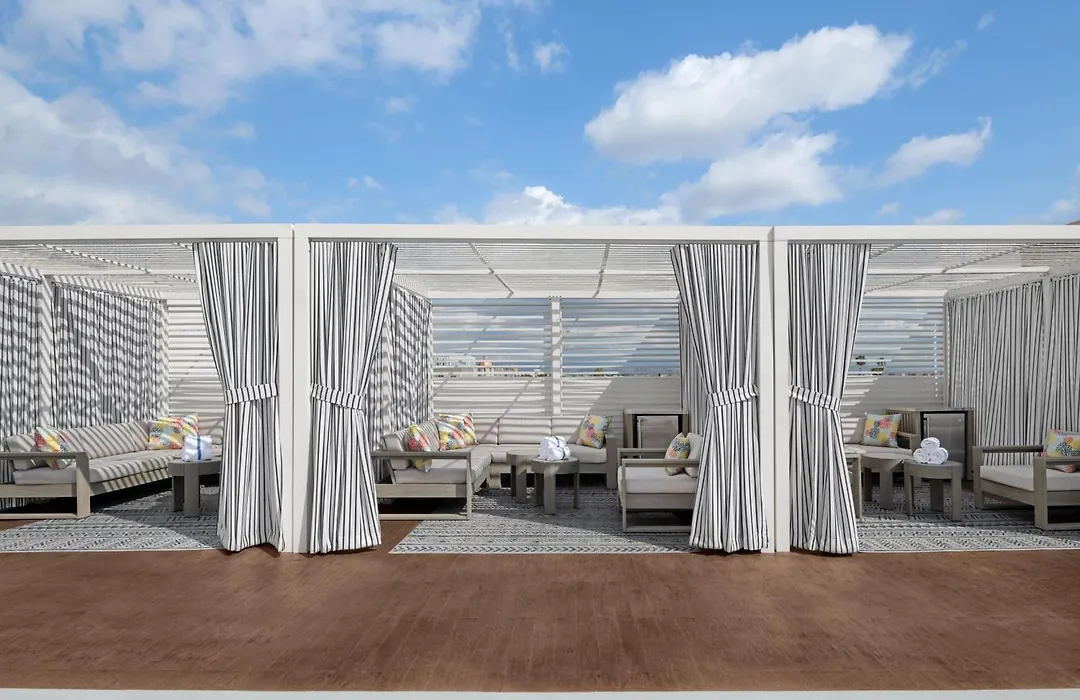 Leisure facilities at the Residence Inn include a heated outdoor swimming pool, a rooftop deck, a hot tub, and a fitness center open 24/7. Additional services such as a meeting room are available for business guests or social gatherings.