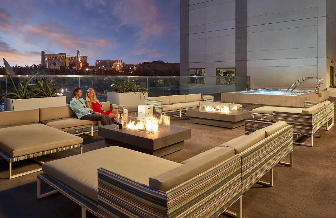 Residence Inn By Marriott At Anaheim Resort/Convention Center offers a family-friendly experience with modern suites equipped with kitchenettes. This 3-star Anaheim hotel features a heated outdoor swimming pool, free breakfast buffet, and a fitness center.