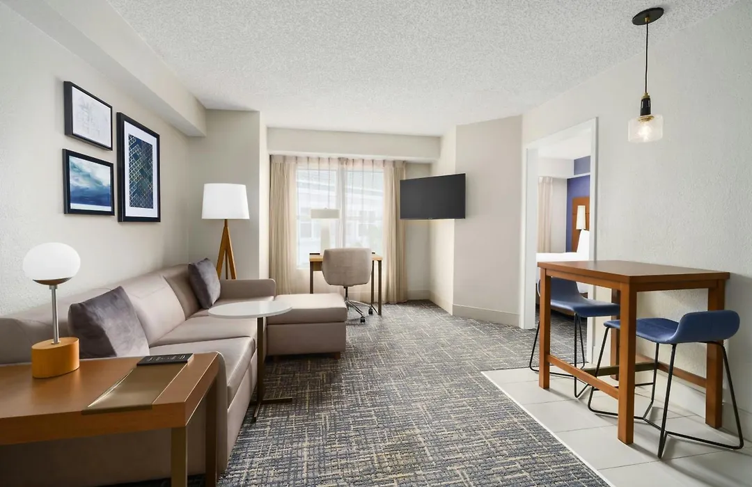 Each suite at Residence Inn features a fully equipped kitchen with modern appliances, a spacious living room, and well-lit workspaces. Comfortable guestrooms include plush Marriott bedding and flat-screen TVs with cable channels. Guests can unwind in pet-friendly suites, some of which also come with pullout sofa beds.