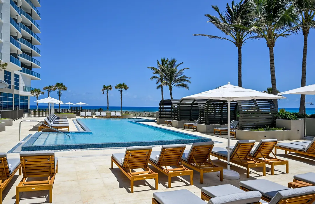 Amrit Ocean Resort & Residences Singer Island features five-star accommodations, an extensive wellness spa, and direct beach access. The property includes an outdoor swimming pool, fitness center, on-site restaurant, lobby bar, and offers personalized wellness services.