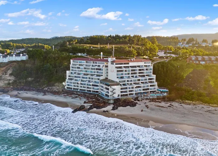 The Inn At Spanish Head Resort Hotel offers oceanfront lodging along the central Oregon Coast, featuring 120 guest rooms with breathtaking views, most equipped with kitchens or kitchenettes. This 4-star Lincoln City hotel includes diverse amenities such as a heated outdoor pool, fitness center, and on-site dining at Fathoms Restaurant & Bar.