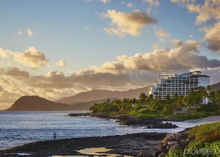 The resort is located 21.7 miles from Honolulu and offers a unique Arrival & Departure Lounge for guest convenience. Access to local landmarks such as Paradise Cove Beach is within a short distance. Transportation options include helicopter rides directly from the airport to the resort's helipad.