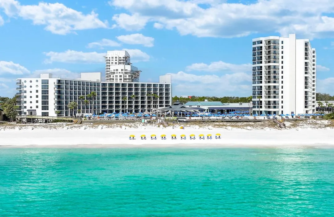 Hilton Sandestin Beach Golf Resort & Spa is a 4-star beachfront hotel featuring a luxury spa, championship golf courses, and family-friendly amenities. With an 8.7/10 rating on Booking.com, guests can enjoy quick access to the beach and a variety of dining options within the resort.