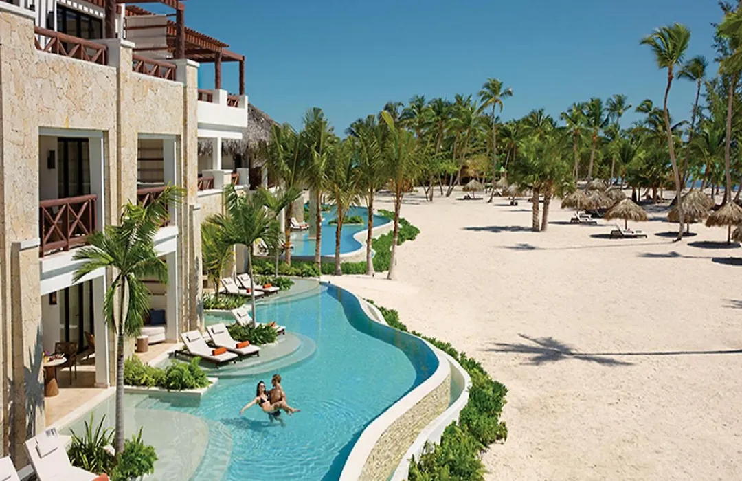 Secrets Cap Cana Resort & Spa (Adults Only), a 5-star establishment with a 9.1/10 rating on Booking.com, features luxury suites, a full-service spa, and multiple dining options. This adults-only Cap Cana hotel offers an all-inclusive experience with the Unlimited-Luxury(R) package, which includes activities such as windsurfing and gourmet dining.